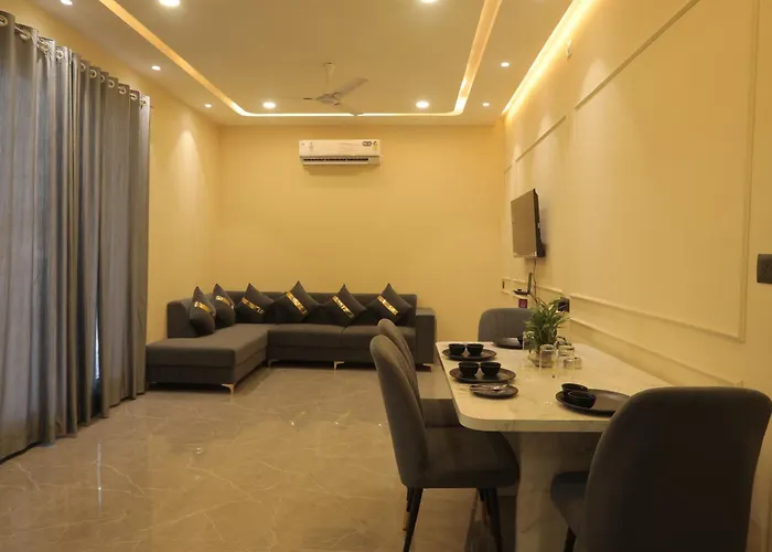 El apartamento The Golden Glow By Ivory Stays ofrece una cocina bien equipada. El establecimiento está a 25 km del Aeropuerto Maharana Pratap, facilitando el acceso para los viajeros. La inclusión de un jacuzzi y una bañera de hidromasaje garantiza una estancia más agradable.